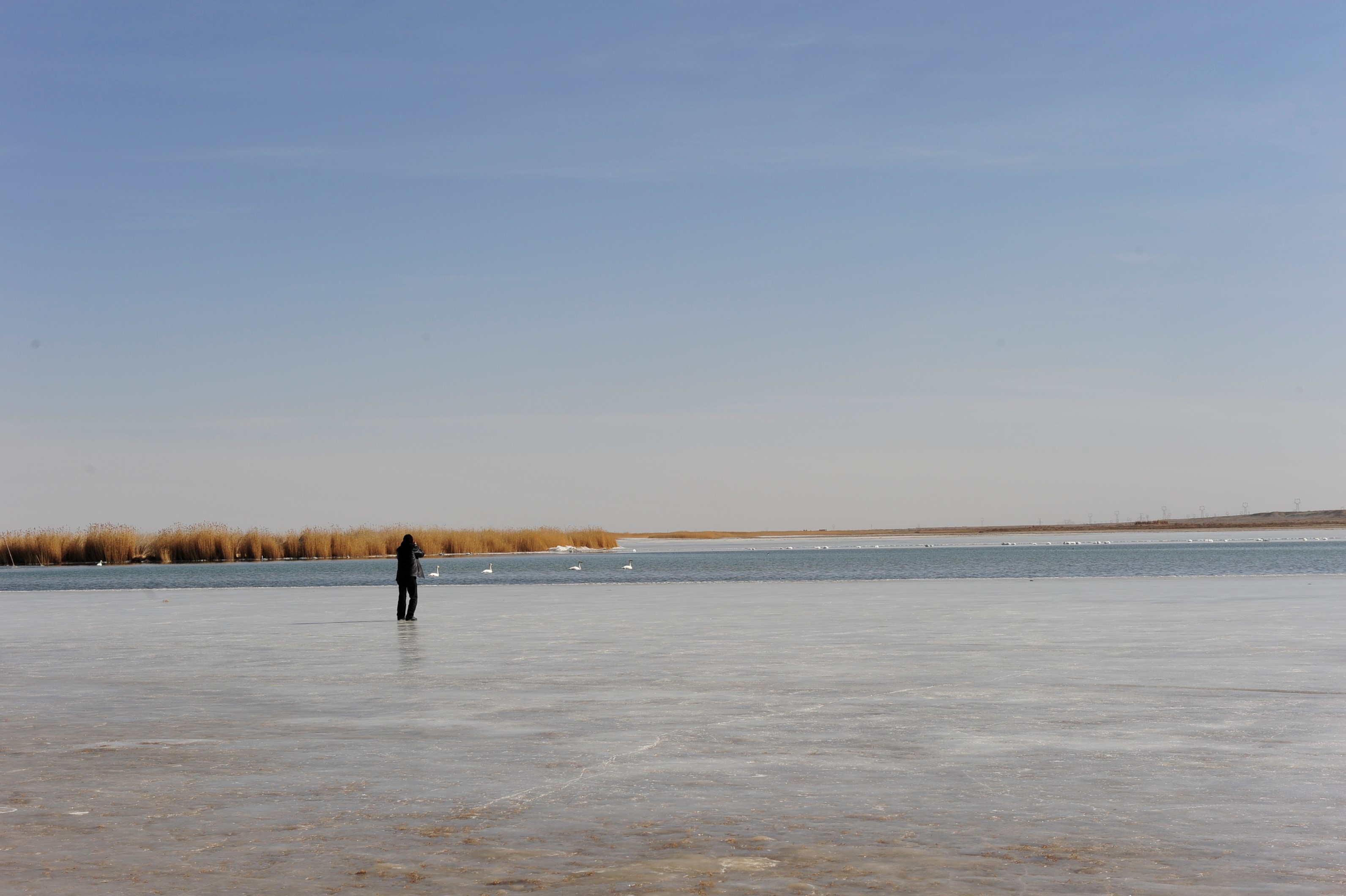 冬季冰湖天鵝飛舞